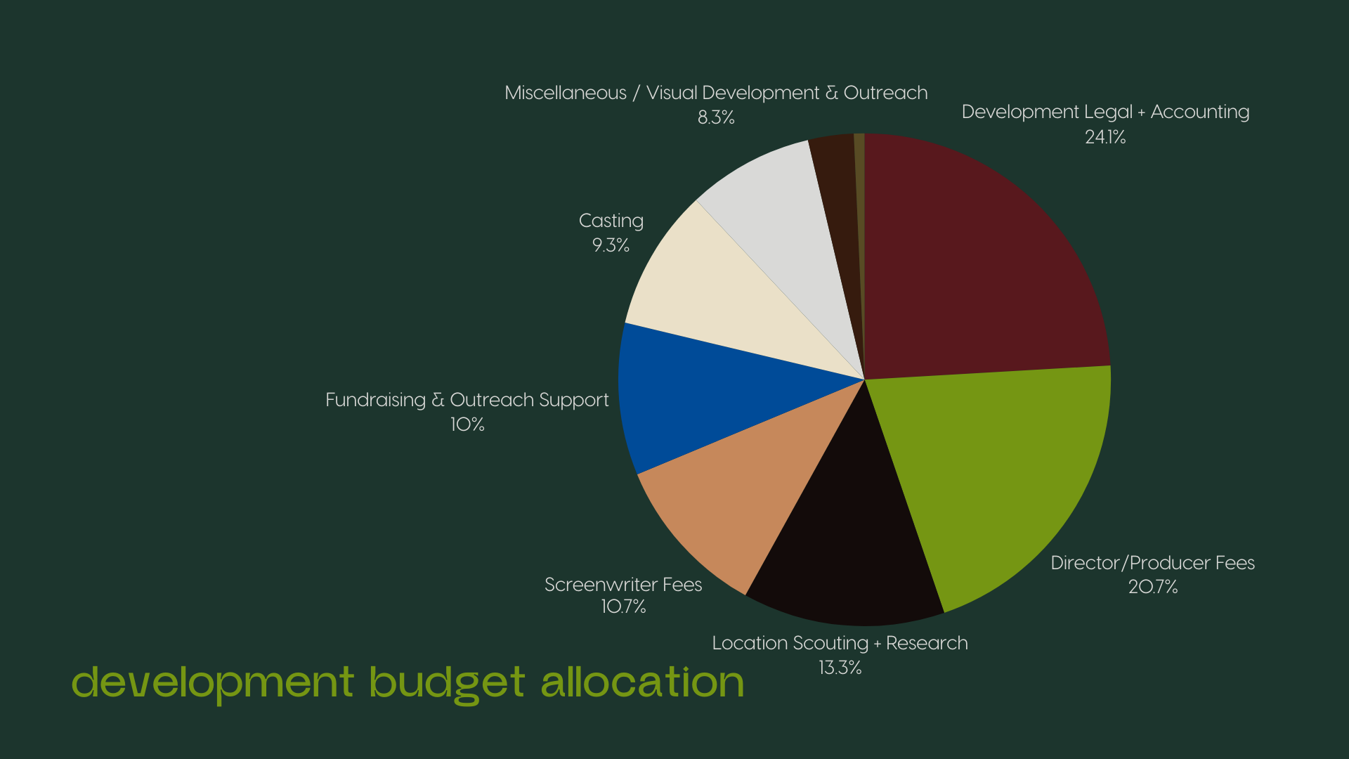 $25,000 — Cast & Polish: Supports casting director engagement, targeted talent outreach, and a professional script polish; covers extended legal/accounting support.